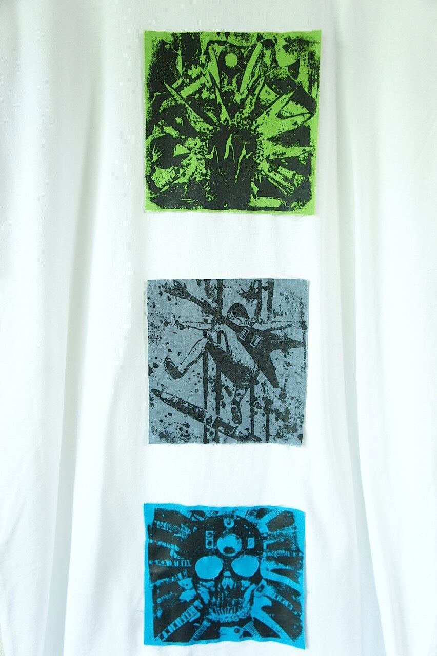 ■注意:このTシャツは一点づつ手作業で制作しています。なのでほつれや擦れ、布パッチのムラやカスミなどありますが、あくまでもデザインの一種なので、ご了承ください。